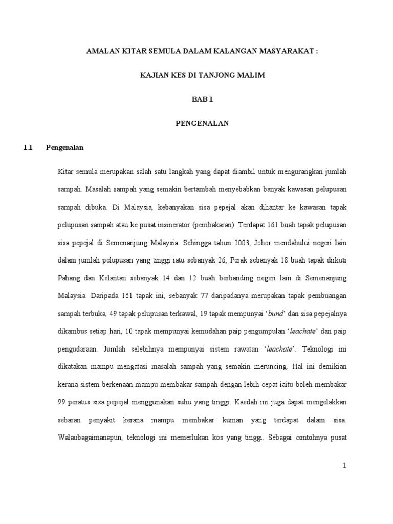 Amalan Kitar Semula Dalam Kalangan Masyarakat Kajian Kes Di Tanjong Malim Pdf